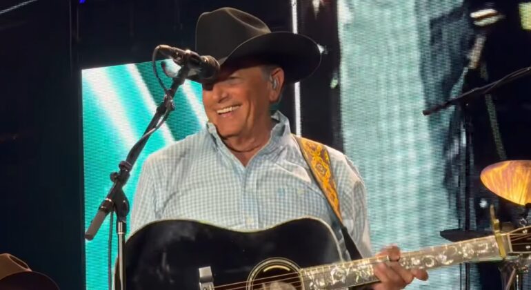 Quickly realizing that he’s not performing with the “Chicken Fried” singer (he’s probably off cooking up his next round of shows at the Sphere in Las Vegas which will probably once again be labeled “demonic” or something of that sort), Strait would quickly correct himself and compliment Top, calling him an “amazing performer.”
